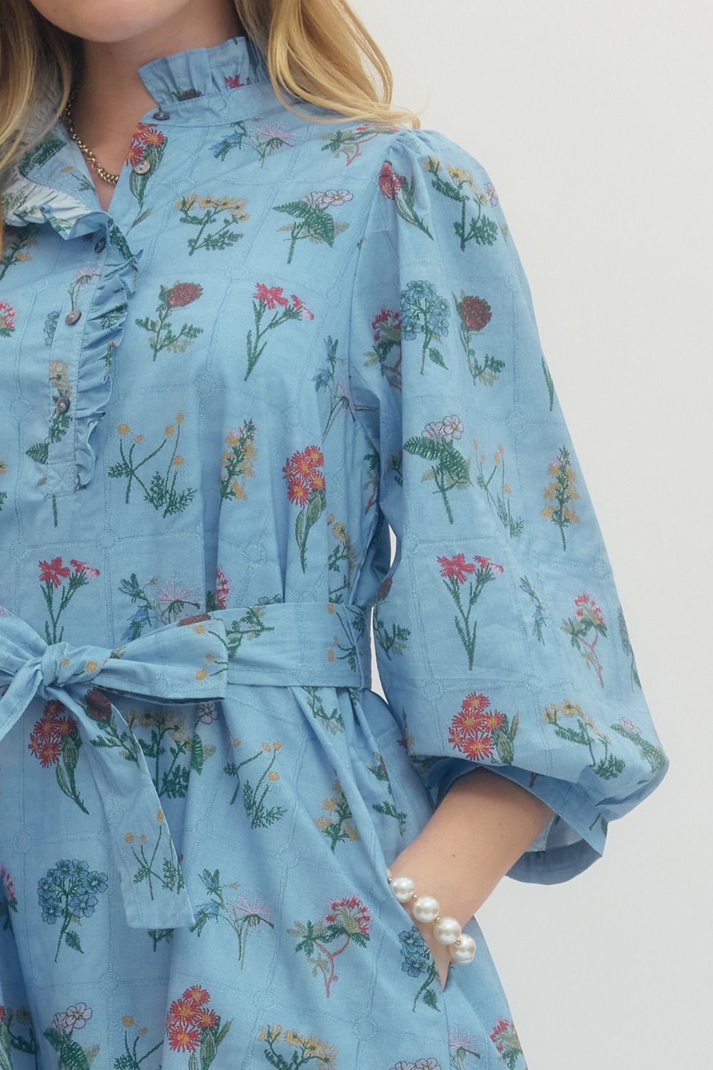 Abigail Dress-Blue/Pink Print